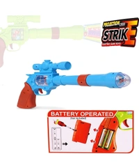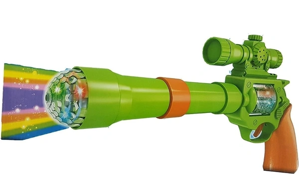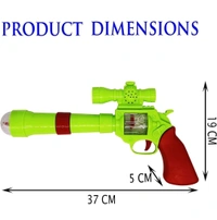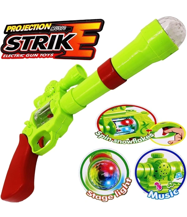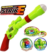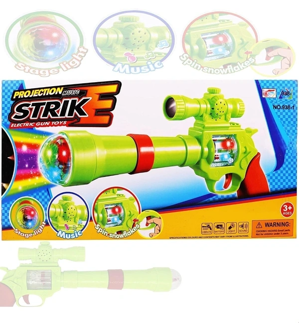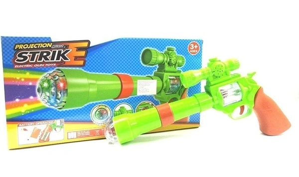 Battery operated music and light gun with 3 D projection