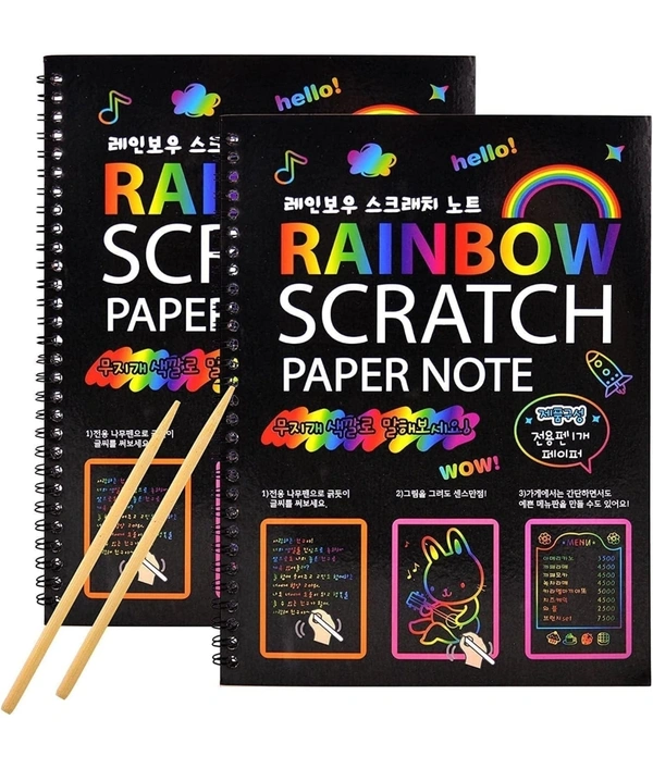 SAFE & NON TOXIC MATERIAL: Our rainbow scratch paper are made of thick cardstock with black-coated surface. Safe and No odd smell, No toxic powder, kids can create colorful, no-fail designs.