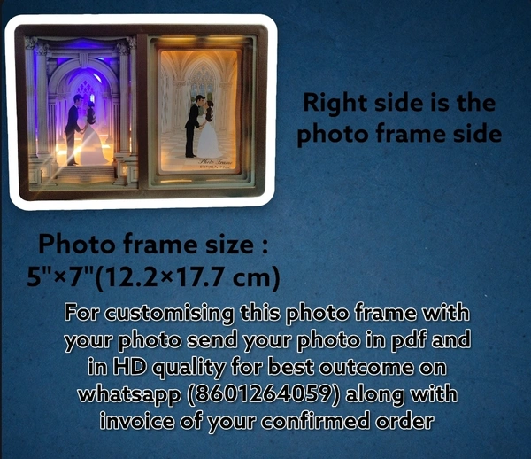 You can customise this product just send your photo which you want to frame in it in pdf on whatsapp(8601264059) along with invoice of confirmed order