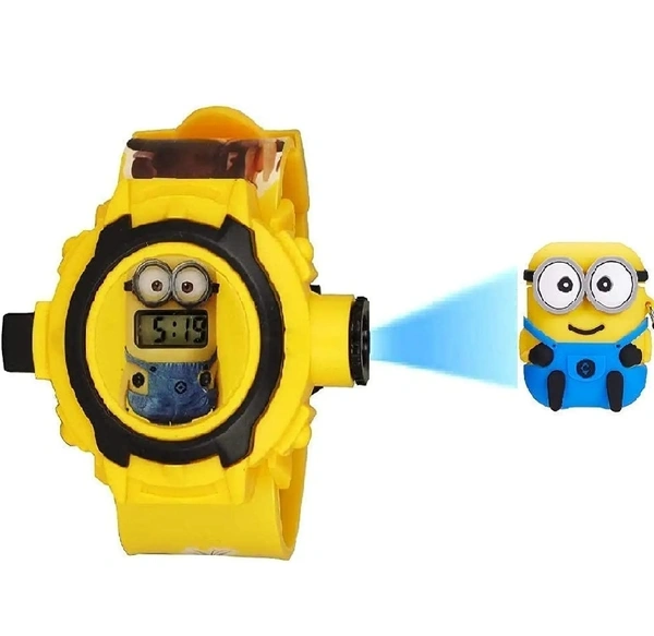 Digital 24 Projector Minions Cartoon Character Watch for Boys & Girls (Yellow)