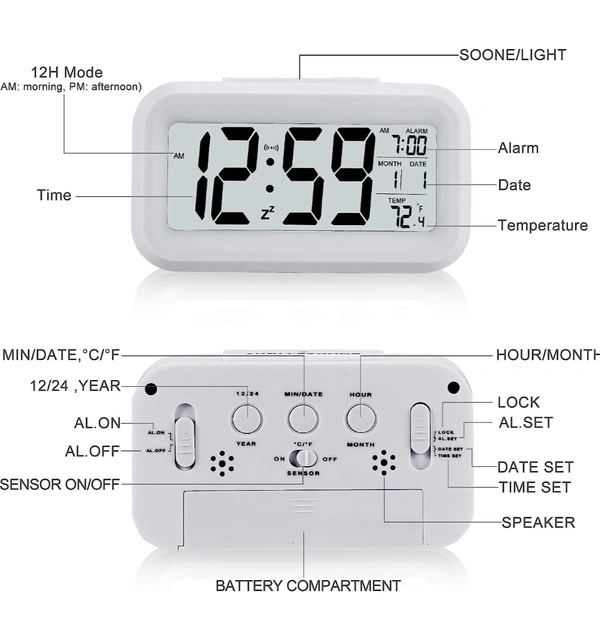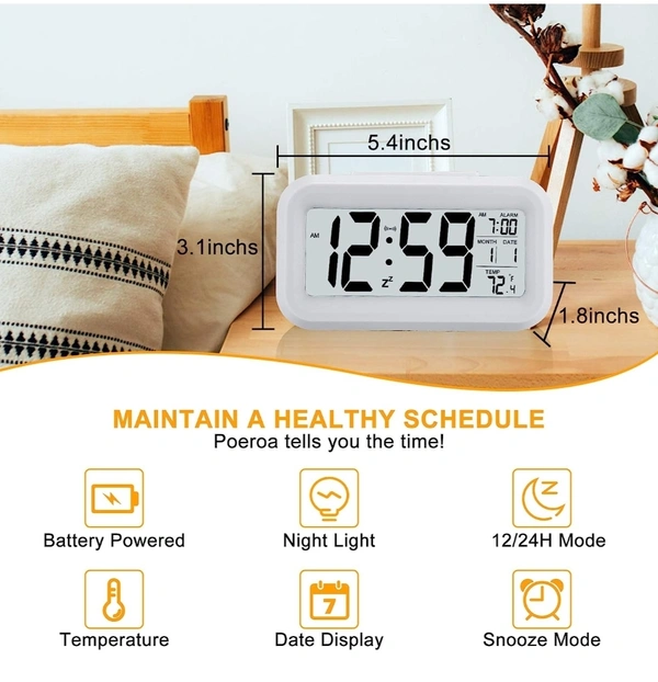 Digital Alarm Clock , Battery Operated,with Date, Temperature, Time , Lcd Clock