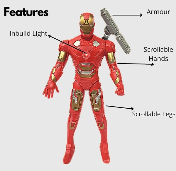 💡【 INBUILD LIGHT】Just Press The Back Button Of This Iron Man Toy And It Will Lighten As Shown In Image.